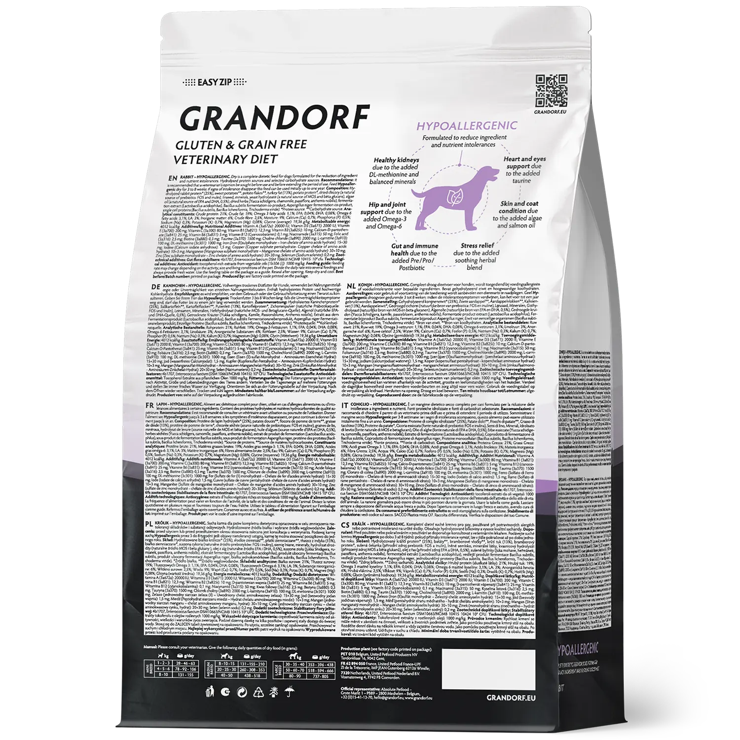 Il est recommandé de consulter un vétérinaire avant utilisation ou poursuite de l'utilisation. Donner l'aliment sec Hypoallergenic jusqu'à 3 à 8 semaines: si les symptômes d'intolérance disparaissent, on peut continuer à donner l'aliment jusqu'à un an.